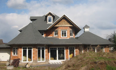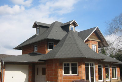 Aufwendige Dachformen lassen sich leicht und kostengünstig mit Bitumenschindeln eindecken.